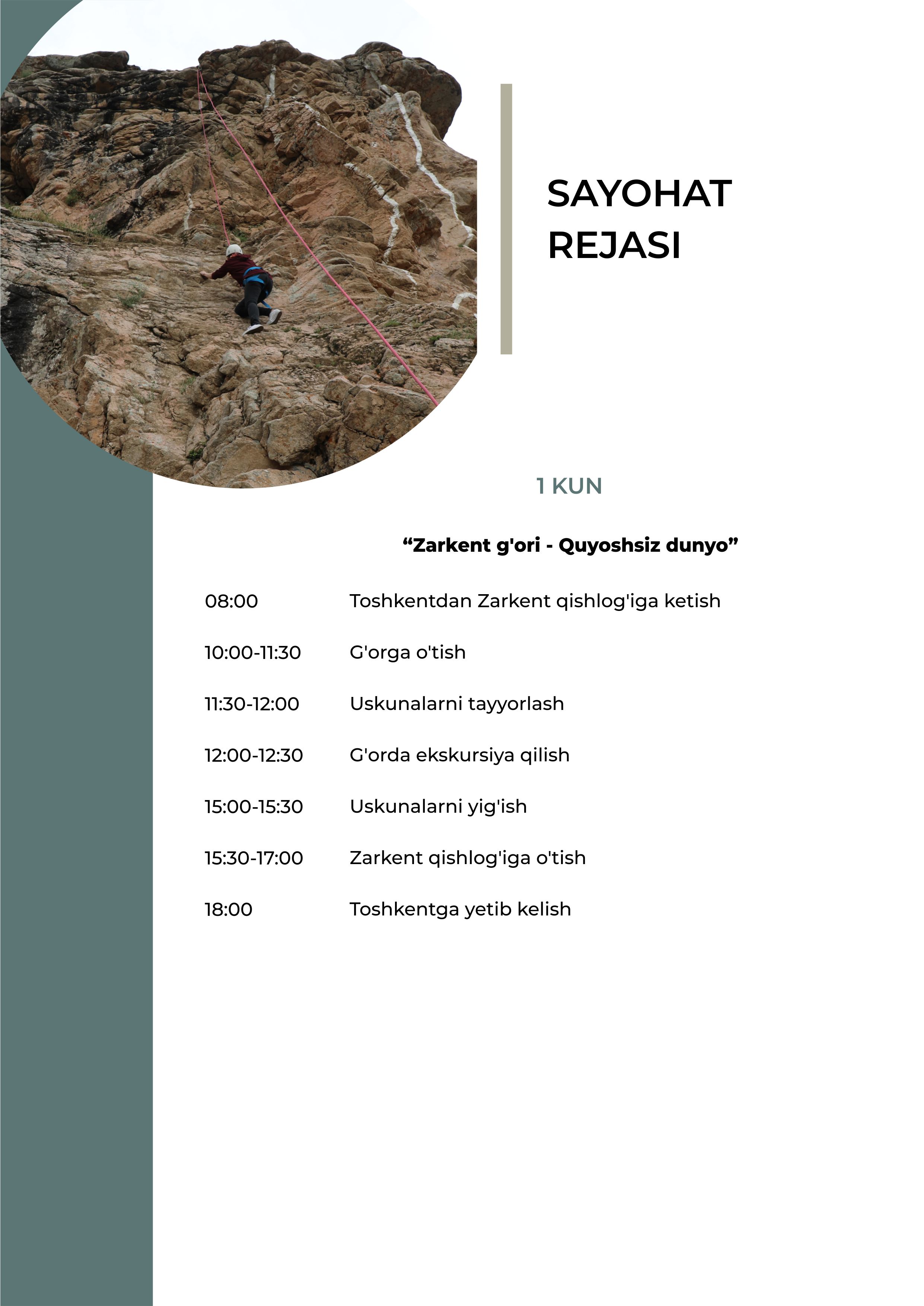 “Zarkent g‘ori - Quyoshsiz dunyo" bir kunlik turistik marshruti